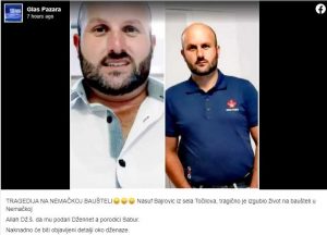 U nesreći koja se dogodila jučer na gradilištu u Njemačkoj tragično je nastradao Nasuf Bajrović iz sela Točilova kod Tutina.
