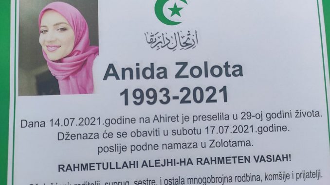 Allahovom voljom u 29-oj godini života na bolji svijet je preselila Anida Zolota.