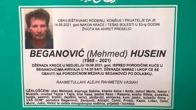 na Ahiret preselio naš dragi Beganović (Mehmed) Husein.