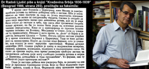 Sretenjskim ustavom Srbija je postala ‘u pravleniju svom nezavisimo knjažestvo’, pa je kao takva dobila zastavu i grb. ‘Boja narodna srbska jeste otvoreno crvena, bela i čelikasto-ugasita’.” (str 292)