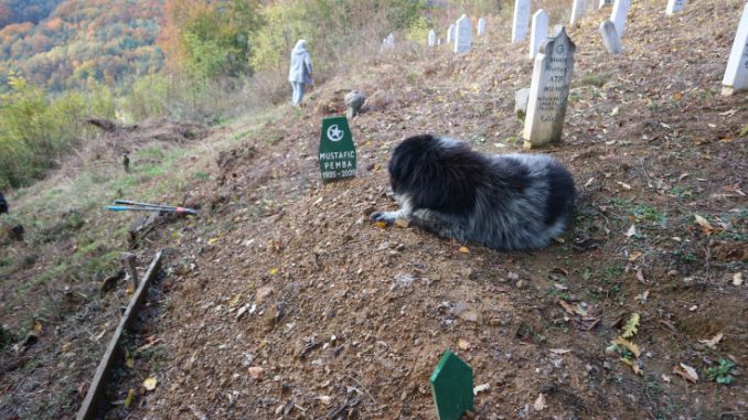 Tako na mezarju Hrašće već danima, uz mezar Pembe Mustafić leži njen pas Rundo.