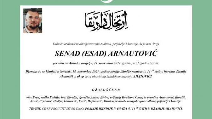 na Ahiret preselio naš dragi Arnautović (Esad) Senad.