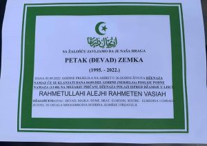 Svi smo Allahovi i Njemu se vraćamo. Allahovom voljom sutra ćemo na bolji i ljepši svijet ispratiti dvoje naših džematlija, našu Petak Zemku i našeg Belegić Seada. Allaha molimo da se njihovim dušama smiluje, oprosti im grijehe, sačuva kaburskog azaba i podari lijepi džennet a njihovim porodicama podari sabura – stoji u opisu objave.