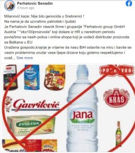 “Dragi moji Bosanci i Hercegovci apelujem na vas da ne kupujete HR proizvode u narednom periodu !