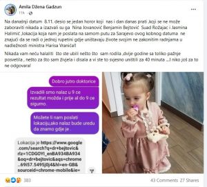 Amila Gadžun, majka tragično preminule djevojčice Džene sinoć je objavila status u kojem se prisjetila tragičnog dana i odlaska na polikliniku koja je bila kobna za njenu kćerku.