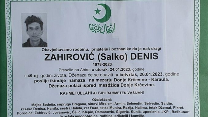 “Sa žalošću javljamo rodbini, prijateljima, poznanicima, radnim kolegama i poslovnim partnerima, da je naš dragi kolega Denis Zahirović tragično preselio na ahiret dana 24.01.2023. u svojoj 45-oj godini života.