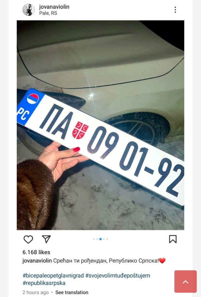 Podsjetimo, na internetu se pojavila fotografija mladića iz RS-a koji je na svom vozilu postavio registracione oznake Republike Srpske (GA 09-01-92), koja simbolizira Dan RS-a kojeg uzimaju za datum nastanka ovog entiteta.