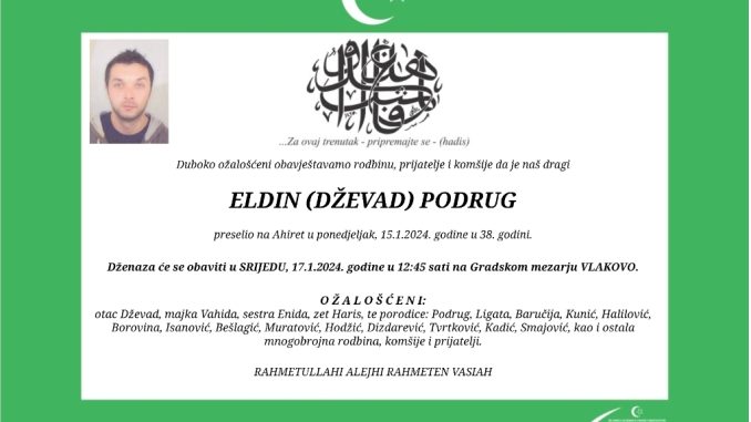 preselio na Ahiret u ponedjeljak, 15.1.2024. godine u 38. godini.