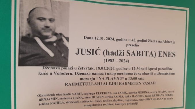 Dana 12.01.2024. godine u 42. godini života na Ahiret je preselio JUSIĆ (hadži SABITA) ENES.