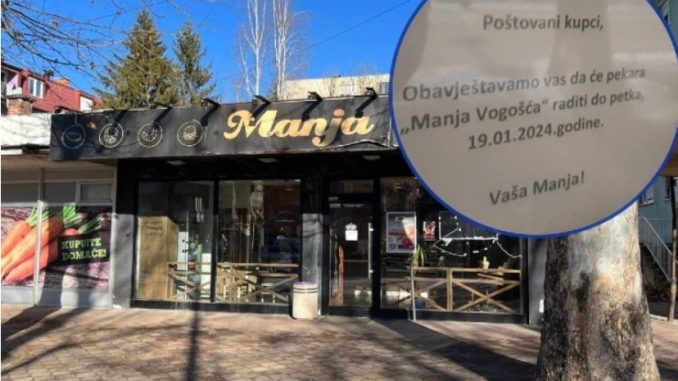 Naime, na izlogu ove pekare stoji obavijest da će pekara raditi do 19. januara 2024. godine.