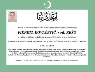 Preselio na ahiret 13.01.2024. u 47. godini života. Dženaza će se klanjati u ponedjeljak 15.januara 2024,04.Redžeba, 1445.h.god., poslije ikindije-namaza na mezarju u Kamenici (Široki Put). […]