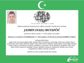 …Za ovaj trenutak – pripremajte se – (hadis) Duboko ožalošćeni obavještavamo rodbinu, prijatelje i komšije da je naš dragi JASMIN (NAIL) MUTAPČIĆ preselio na Ahiret […]