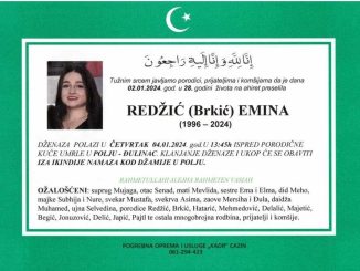 Tužnim srcem javljamo porodici, prijateljima i komšijama da je dana 02.01.2024. god. u 28. godini života na ahiret preselila REDŽIĆ (Brkić) EMINA (1996-2024) DŽENAZA POLAZI […]
