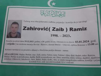 Tužnog srca obavještavamo rodbinu, prijatelje i komšije da je naš dragi Zahirović( Zaib) Ramiz 1998.-2023. Preselio na ahiret dana 29.12.2023. godine, u 24. godini života. […]