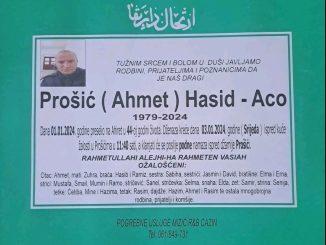 TUŽNIM SRCEM I BOLOM U DUŠI JAVLJAMO RODBINI, PRIJATELJIMA I POZNANICIMA DA JE NAŠ DRAGI Prošić (Ahmet) Hasid – Aco 1979-2024 Dana 01.01.2024. godine preselio […]