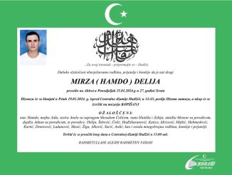 …Za ovaj trenutak -pripremajte se – (hadis) Duboko ožalošćeni obavještavamo rodbinu, prijatelje i komšije da je naš dragi MIRZA (HAMDO) DELIJA preselio na Ahiret u […]