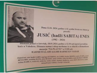 Dana 12.01.2024. godine u 42. godini života na Ahiret je preselio JUSIĆ (hadži SABITA) ENES. Dženaza polazi u četvrtak, 18.01.2024. godine u 12:30 sati ispred […]